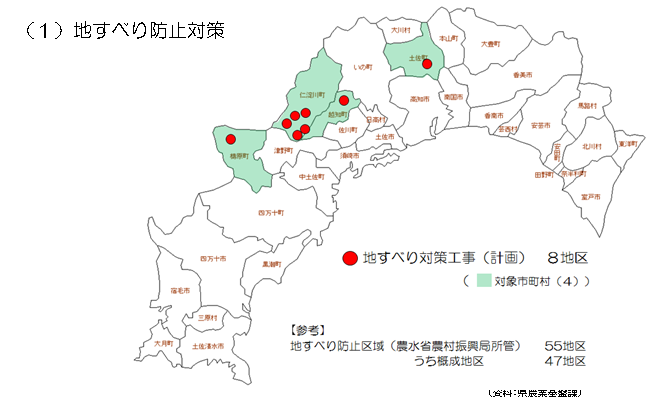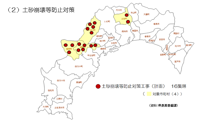 • 南海トラフ巨大地震や台風等の自然災害による農村地域の土砂崩壊等防止対策の計画的な推進