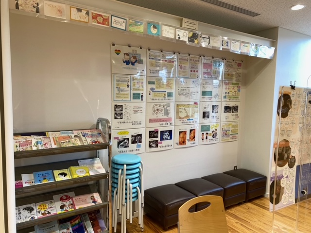 身体のこと、男女交際、友達との関係、妊娠や性感染症などの本や、赤ちゃん人形を抱っこしたり、妊婦体験もできます。
