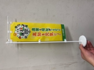 この取組について、広く県民の方に周知するとともに、農福連携によって生産された農作物等の販売を促進するため、農福連携によって生産された農作物等の販売場所等で使用する卓上ミニのぼりを無償で提供しています。提供をご希望される方は、ご相談ください。