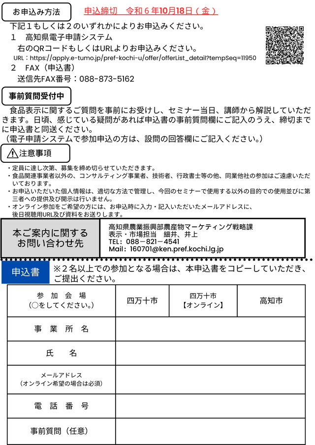 多くの食品関連事業者等の方々のご参加をお待ちしております。