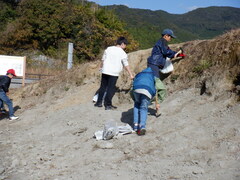 ・化石の発掘では、はじめ貝を割ったりしていましたが、だんだん掘るのがうまくなってきました。きれいな化石がとれてうれしかったです。