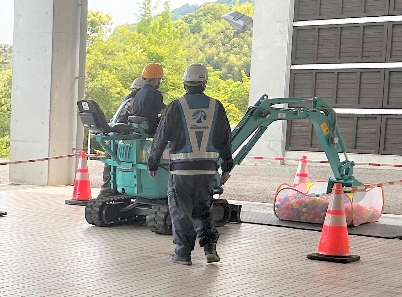ミ二バックホウでカラーボールをすくい、移動させるというものでしたが、皆さん上手に移動させていました。
