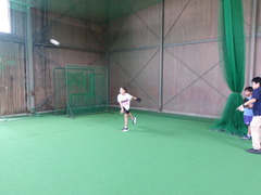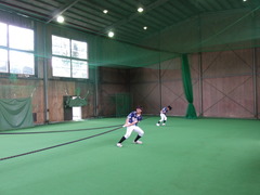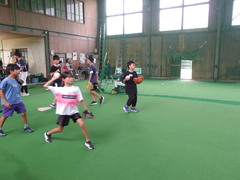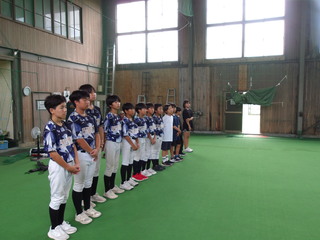 当日は宿毛ソフトボールクラブの皆さんの練習に参加。雨のため雨天練習場での実施となりました。