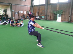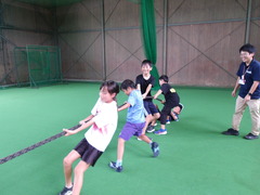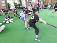 最後は、クラブの皆さんと一緒に体幹トレーニングとして子ども同士の綱引き。これが全身を鍛えられる良いトレーニングだそう。