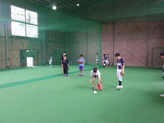慣れてきたところで、キッズ同士でキャッチボール