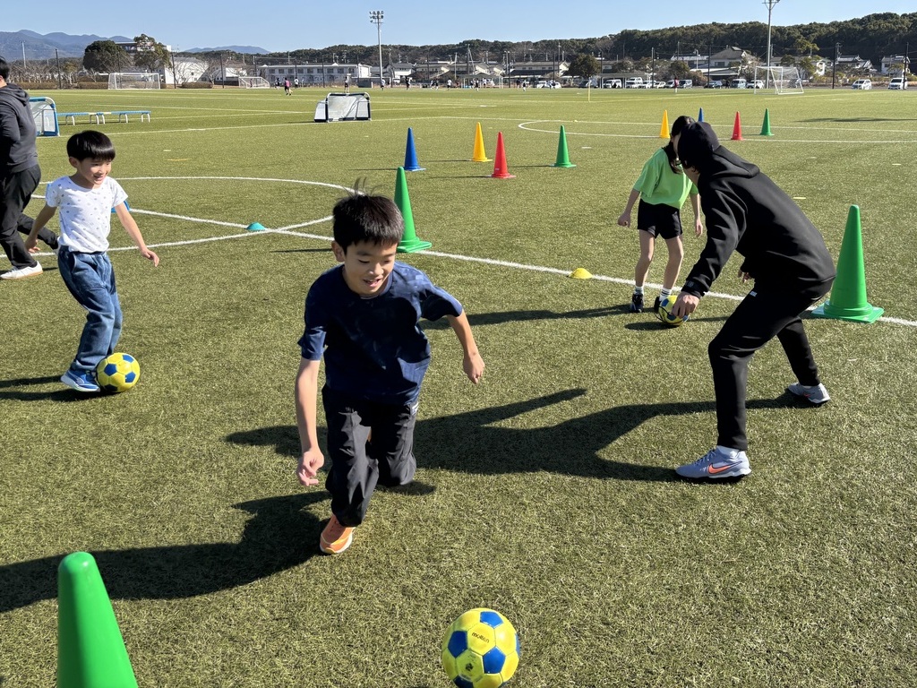 ドリブルでの移動になり、じゃんけんをするときにはボールを止めることも必要なため、楽しみながら足下の技術の向上に繋がっていました。