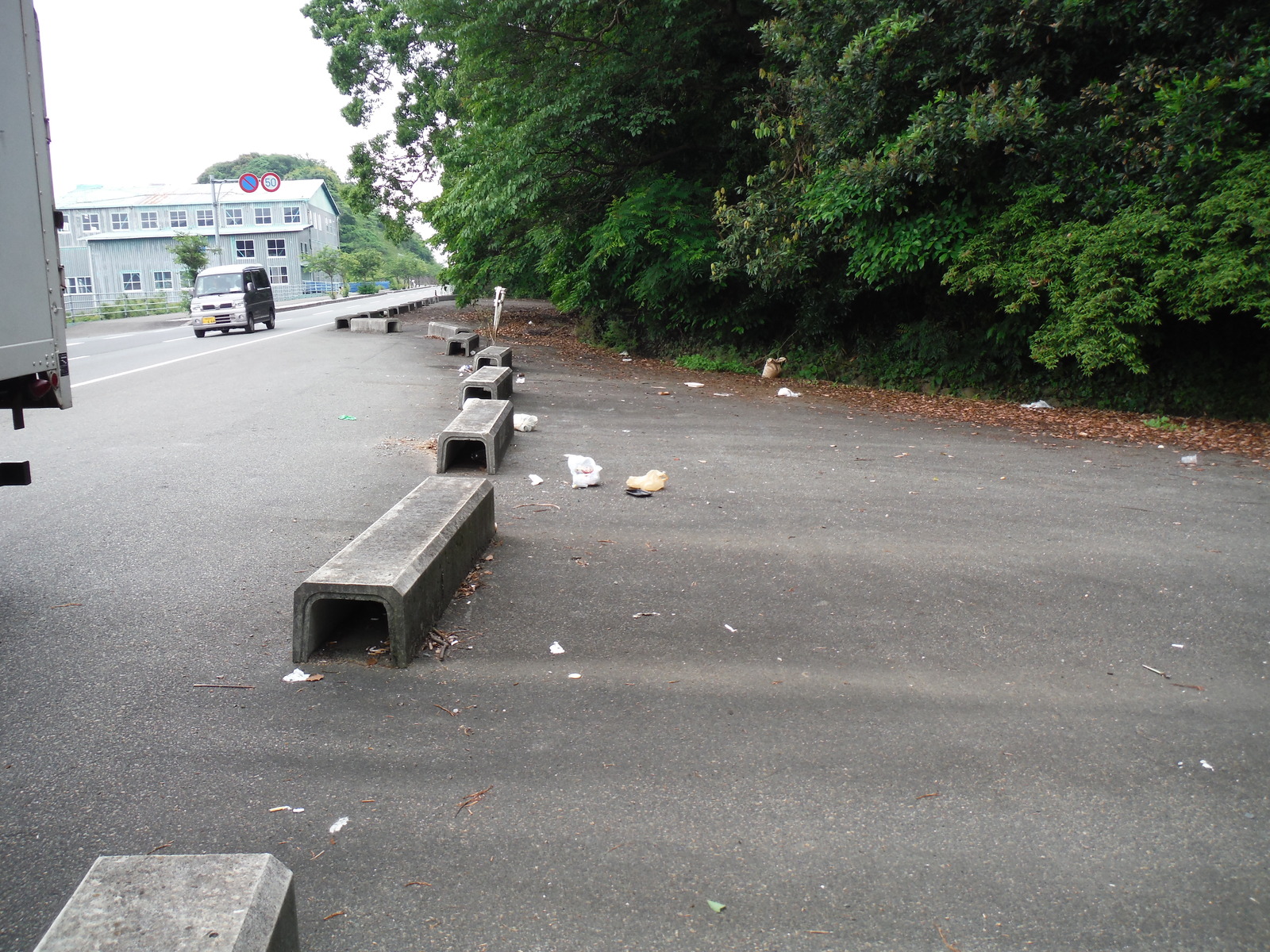 道路の余幅部分に多くのゴミが捨てられており、2トントラック1台ものゴミがありました。