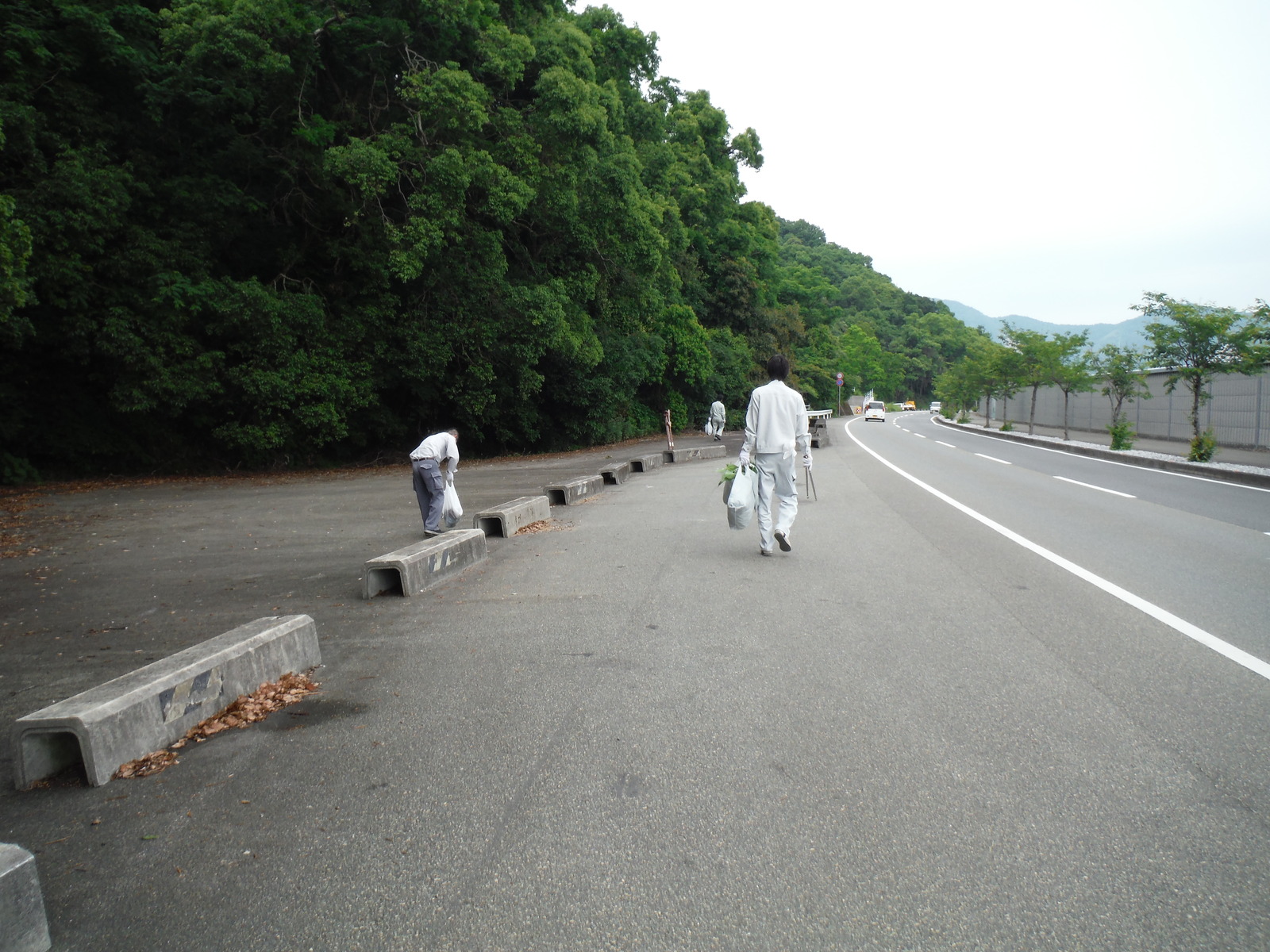落ち葉もありましたが、車道の中央にある植栽帯に多くのゴミが捨てられていました。